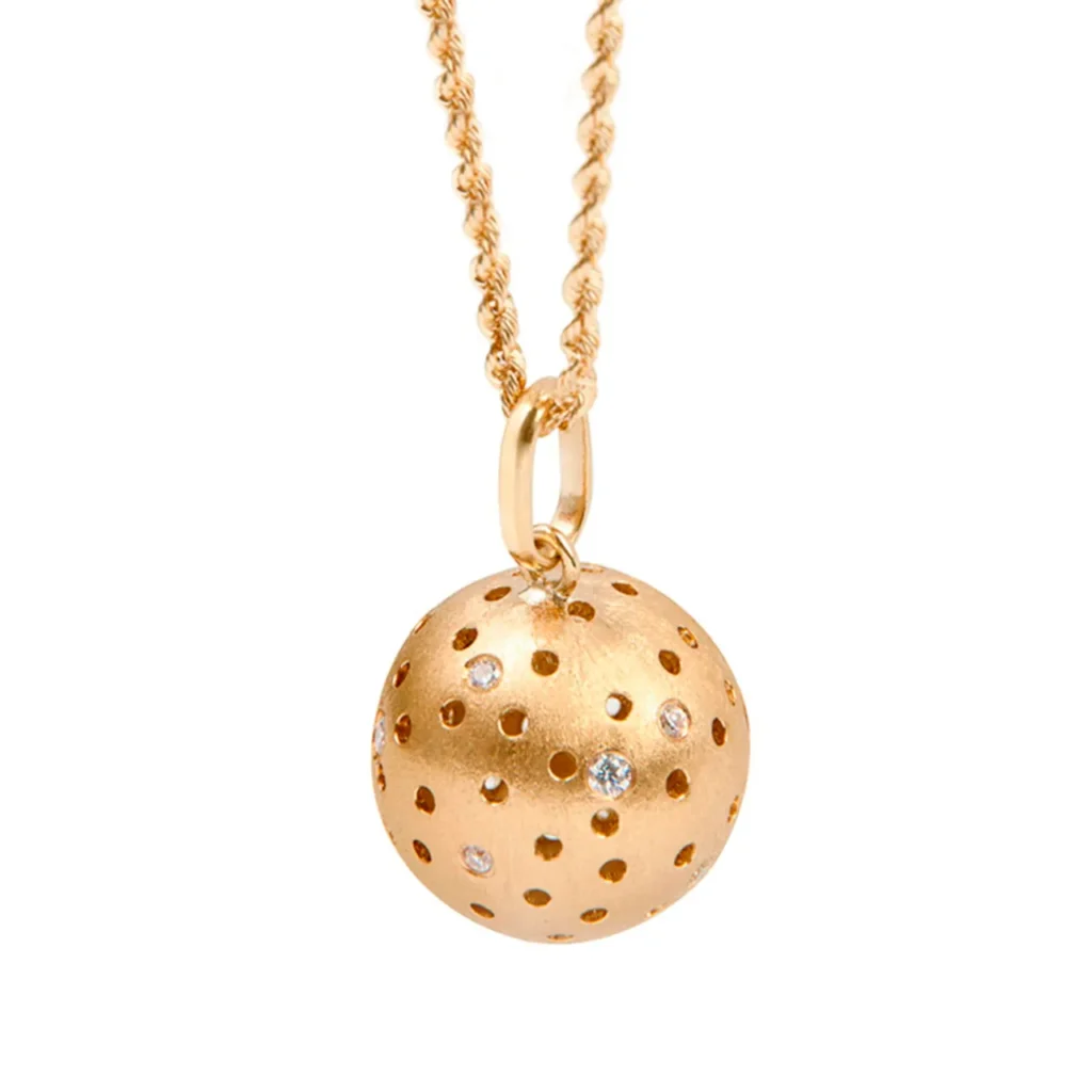 A delicate Kay Pacha pendant featuring diamonds, crafted in 18k yellow or white satin gold, excluding chain.