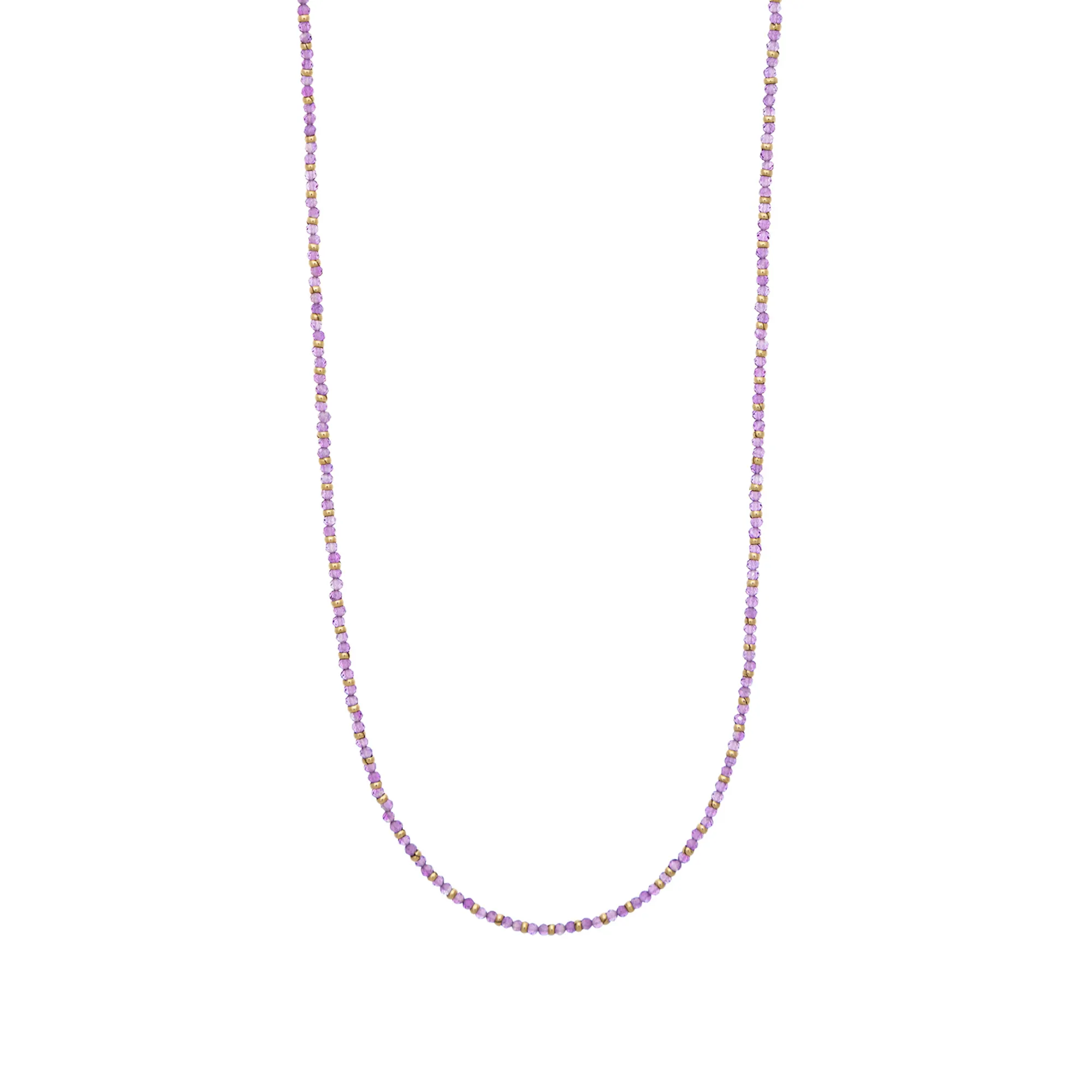 An elegant amethyst chakiras necklace in 18k yellow gold, measuring 39.5 cm, perfect for any occasion.