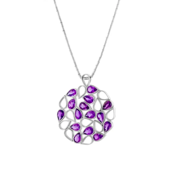 An exquisite amethyst drops pendant in 18k white gold, featuring a sizable design that captures the eye (chain not included).
