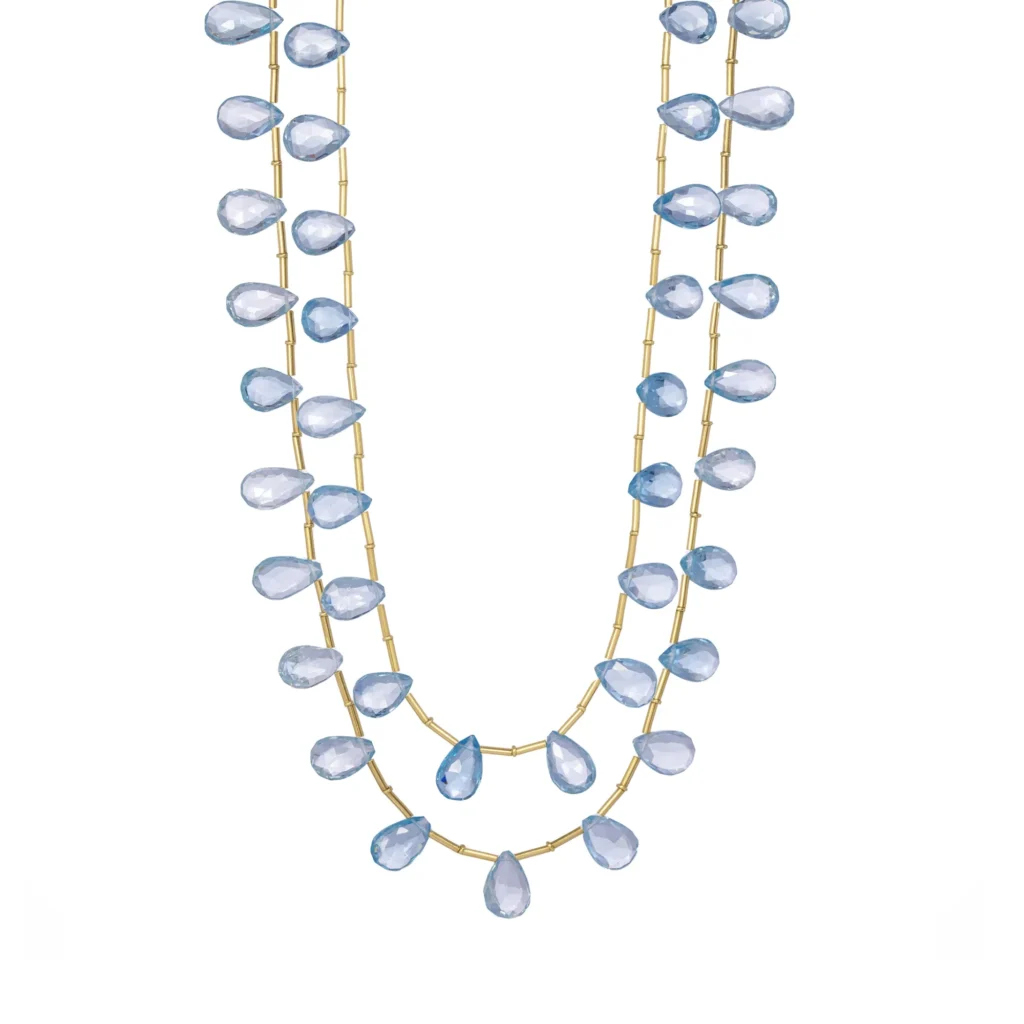 Stylish black spinel drops necklace featuring two strands in 18k white gold, exuding sophistication and versatility.