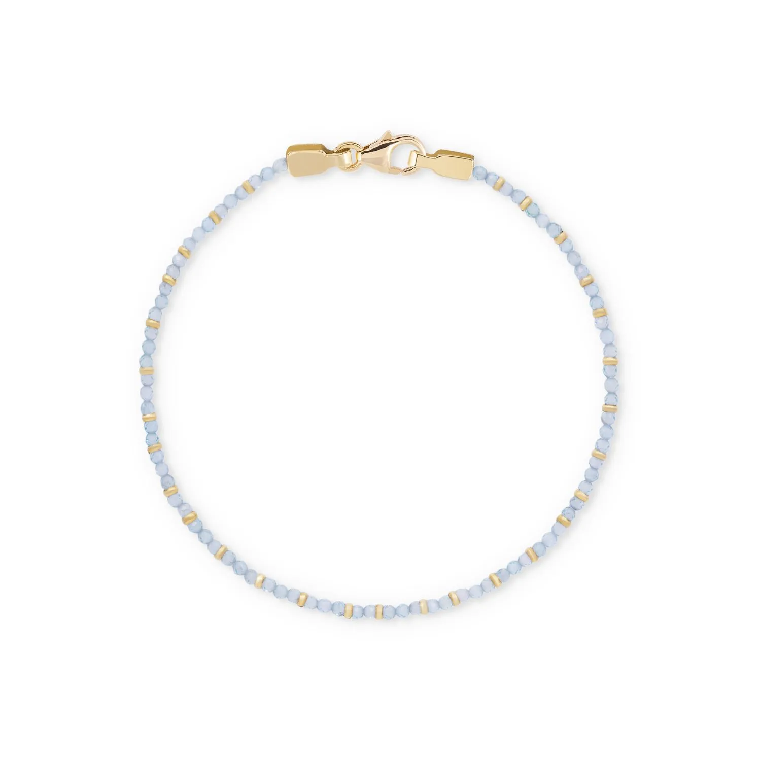 A stylish blue apatite Chakiras bracelet in 18k yellow gold, measuring 17.5 cm in length.