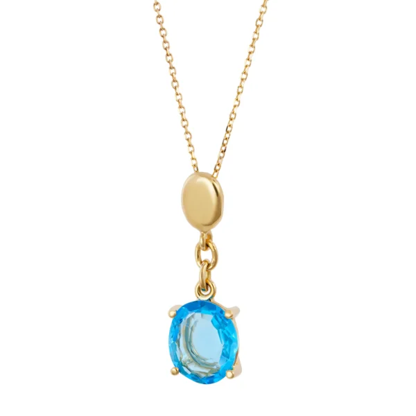 A brilliant blue topaz pendant in 18k yellow gold, featuring 3.89cts of blue topaz (7.6 x 6.4mm), offering a bold and captivating centerpiece (chain not included).