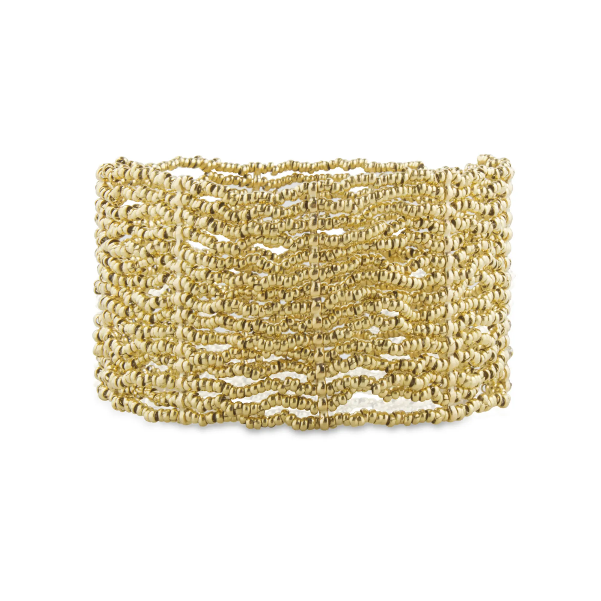 A fashionable Chakiras elastic bracelet featuring 15 strands, designed in 18k yellow gold.