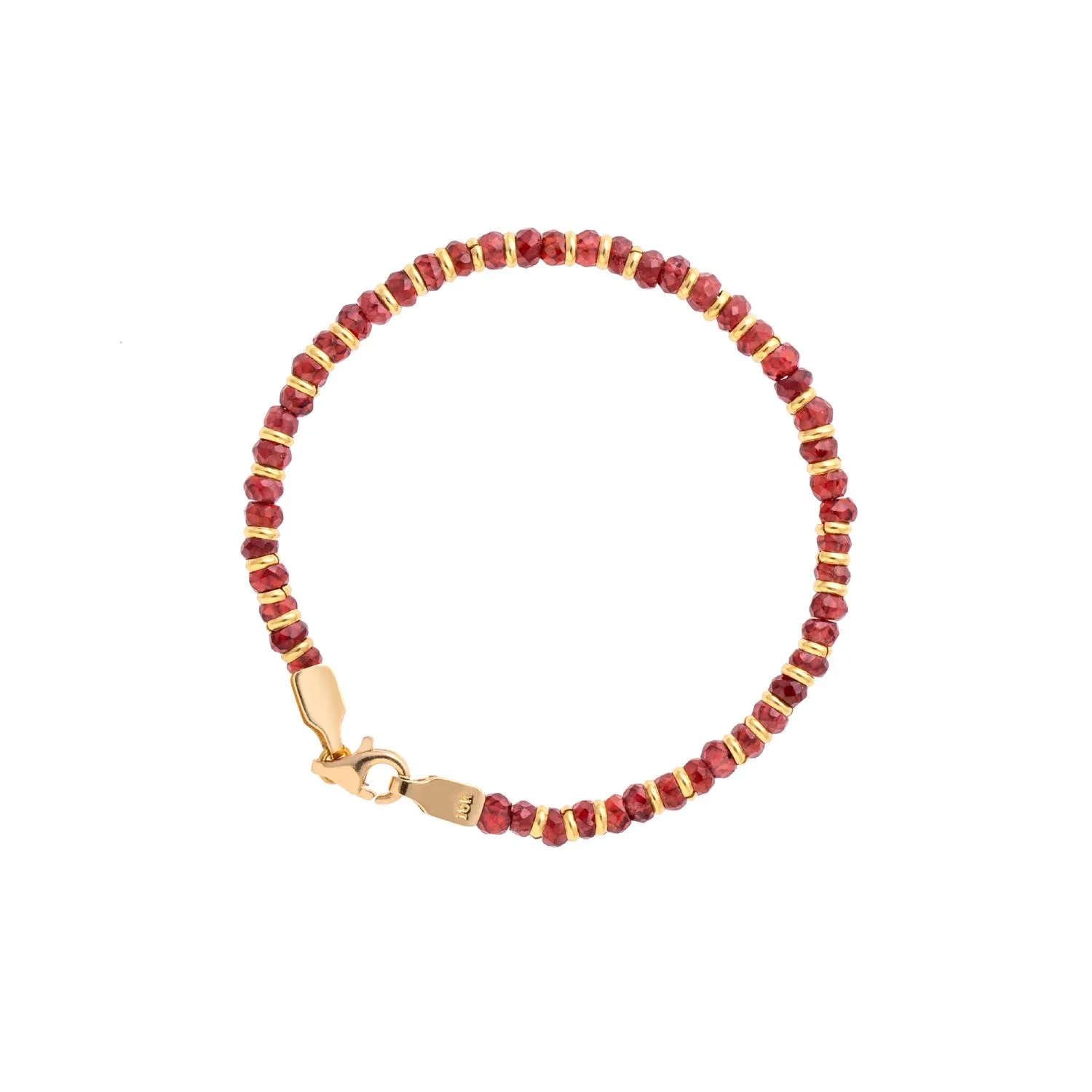 A beautiful garnet Chakiras bracelet in 18k yellow gold, measuring 17.5 cm in length.
