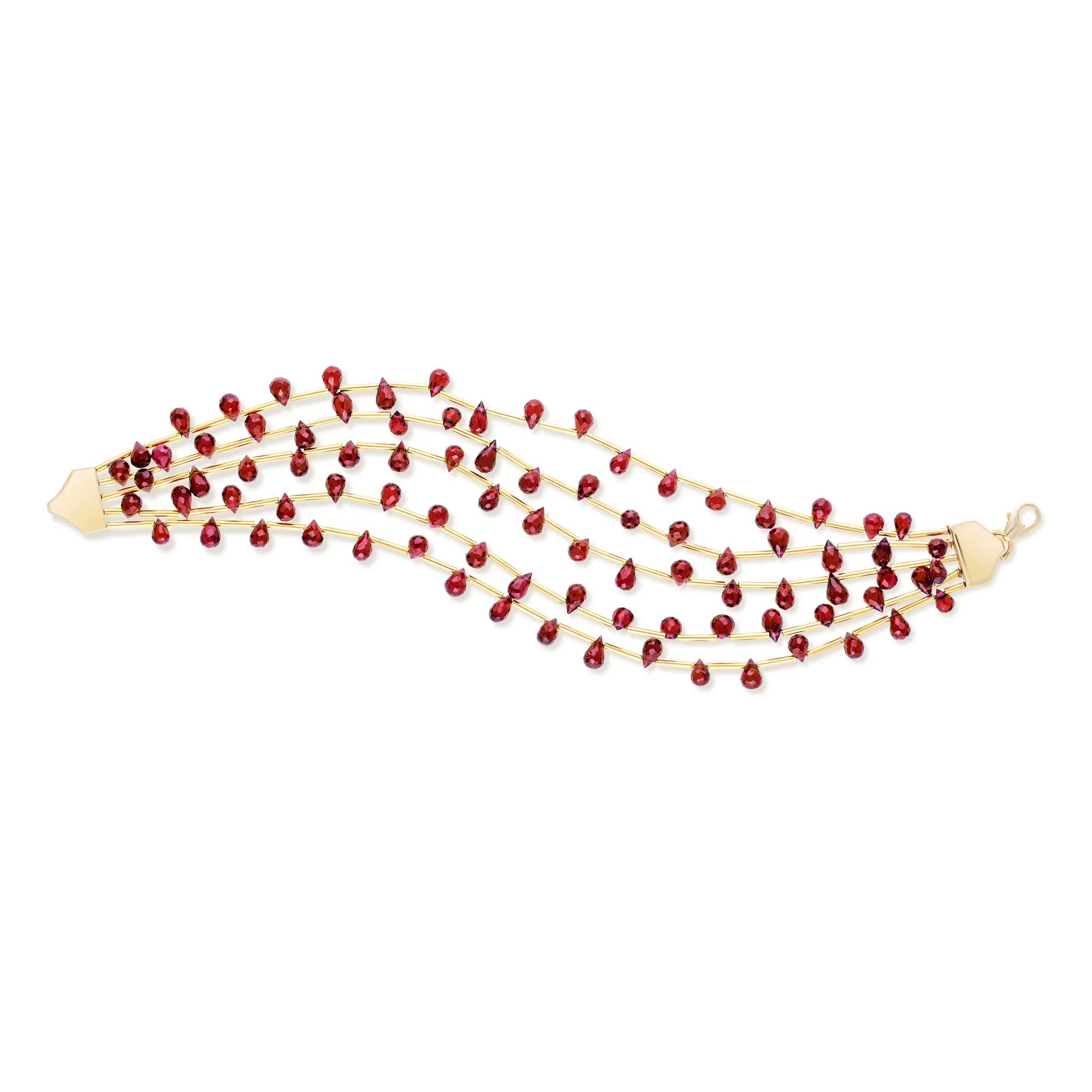 A chic garnet drops 5 rows bracelet in 18k yellow gold, with a length of 18 cm, perfect for adding a touch of elegance.