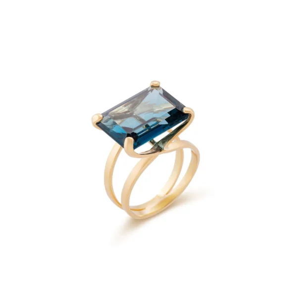 A striking crosses ring featuring London topaz in luxurious 18k yellow gold, perfect for making a statement.