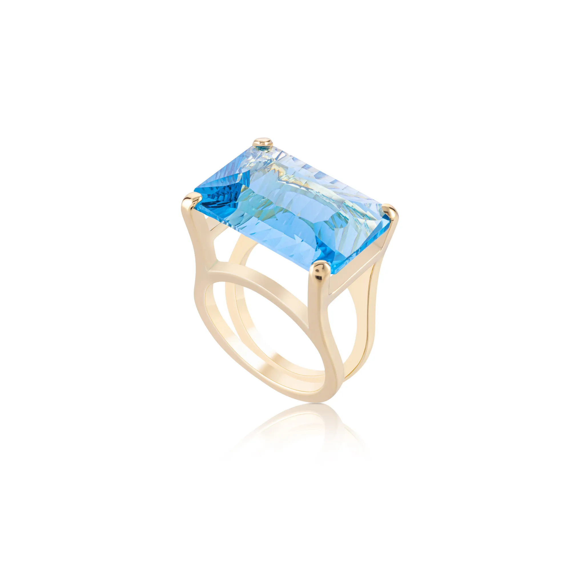 Dazzling London blue laser cut ring in 18k yellow gold, available in size 7 1/2, showcasing 23.55 cts of London blue topaz.