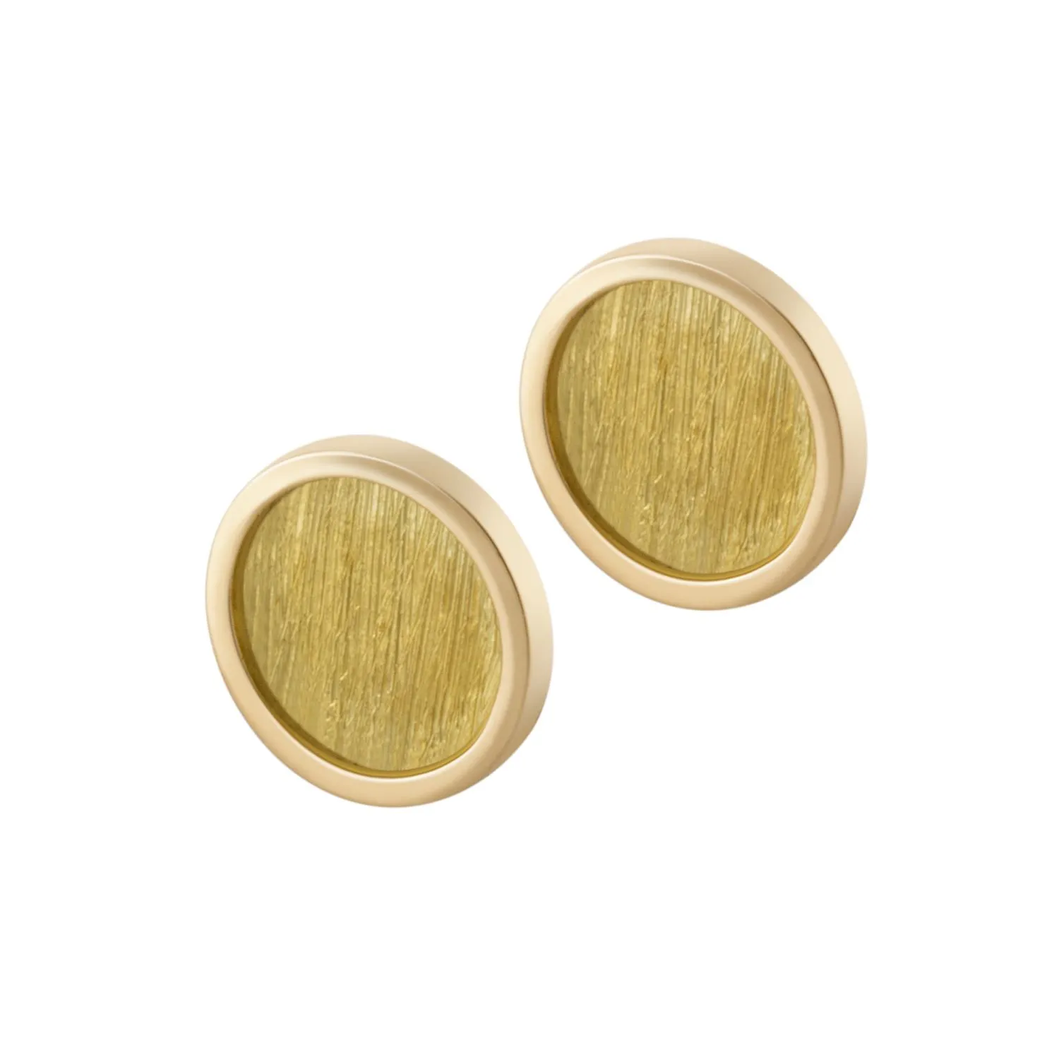 Elegant round satin earrings crafted from 18k yellow gold, featuring a refined diameter that complements any look.